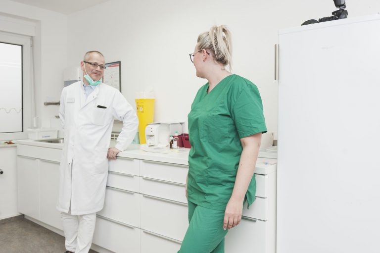 Unsere Praxis liegt im Grünen – ein Ort, an dem Medizin mit Ruhe, Konzentration und Weitblick entsteht. Wer zu uns kommt, nimmt vielleicht einen etwas längeren Weg in Kauf, findet hier aber einen Arbeitsplatz, der Raum lässt für Qualität, Austausch und echtes Arbeiten.